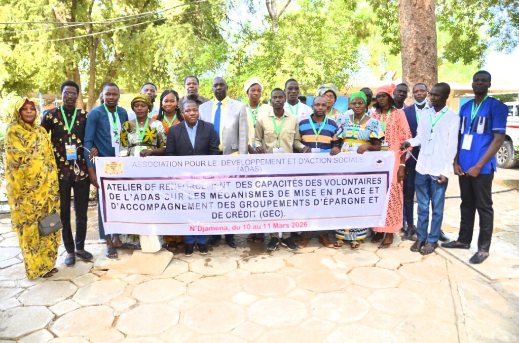 L’Association pour le Développement et d’Action Sociale (ADAS) organise du 10 au 11 mars 2026 au CEFOD de N’Djamena un atelier de formation destiné à renforcer les capacités de ses volontaires sur les mécanismes de mise en place et d’accompagnement des Groupements d’Épargne et de Crédit (GEC).Les participants proviennent des 23 provinces du Tchad.